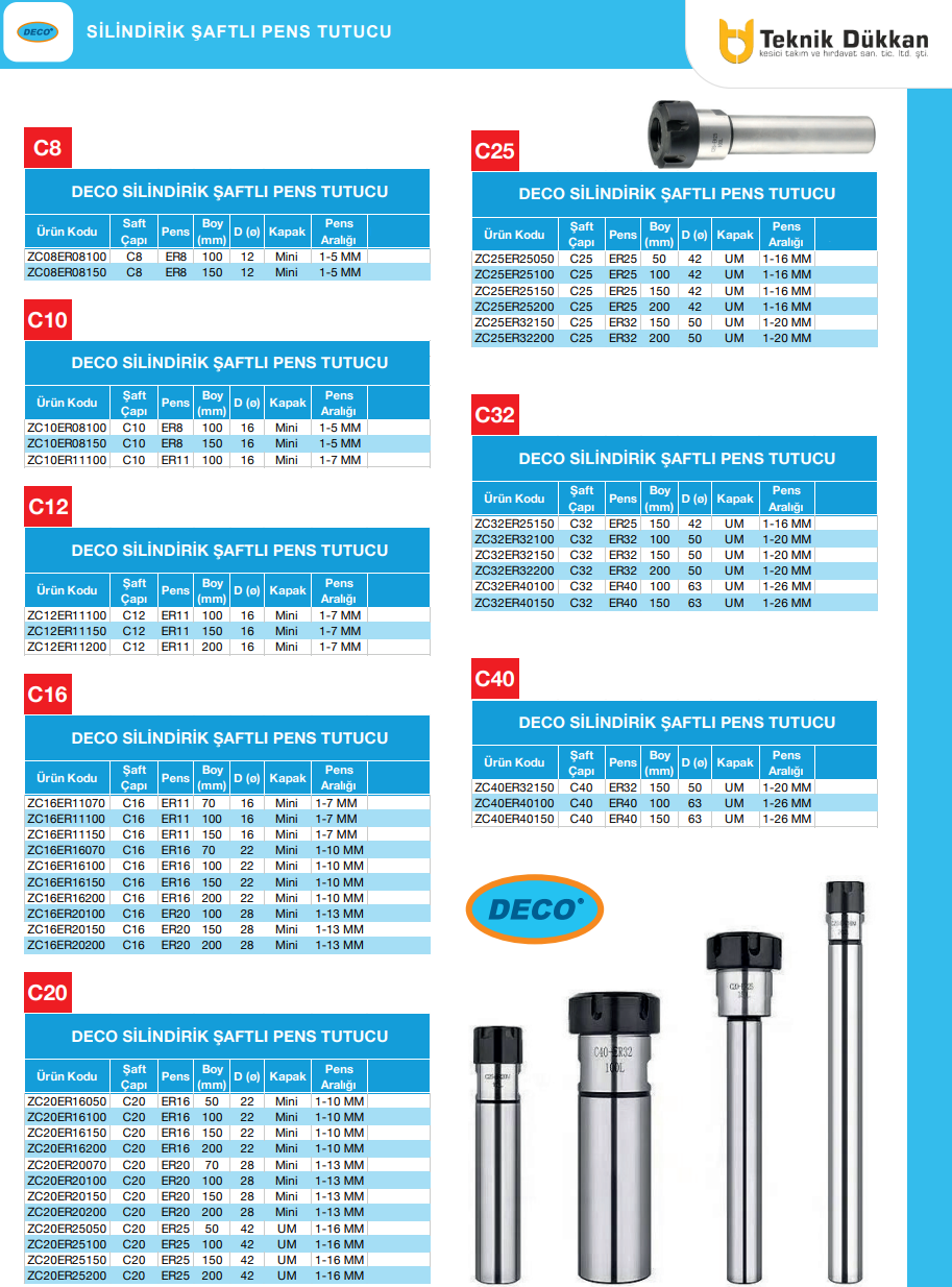DECO C20-ER20-70 Silindirik Şaftlı Pens Tutucu