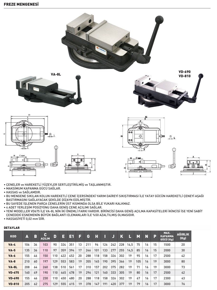 VERTEX VA-8 Hassas Freze Mengenesi