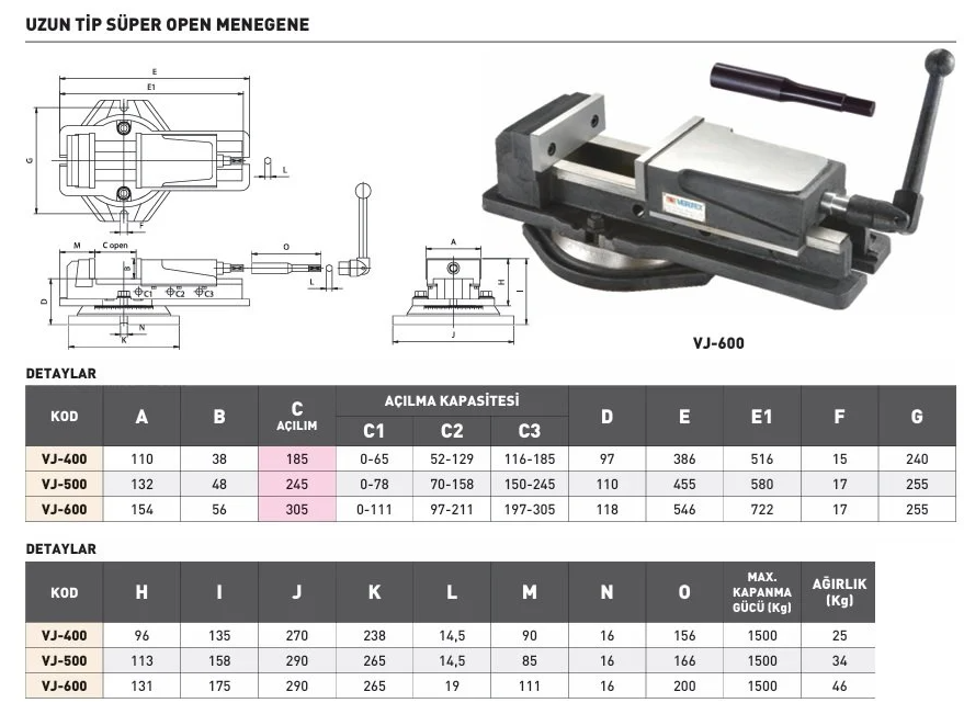 VERTEX VJ-400 Uzun Tip Süper Open Mengene