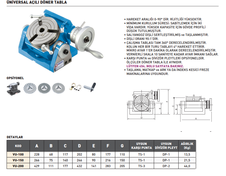 VERTEX VU-100 Üniversal Açılır Döner Tabla