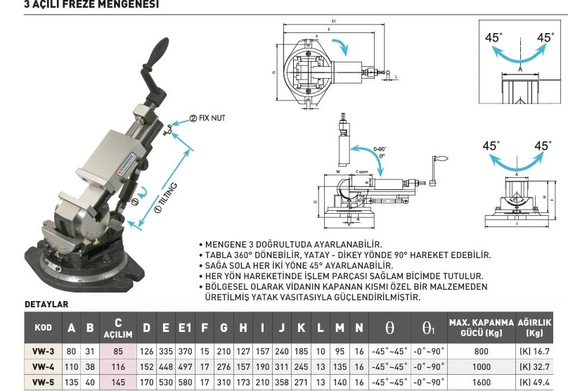 VERTEX VW-3 3 Açılı Mengene