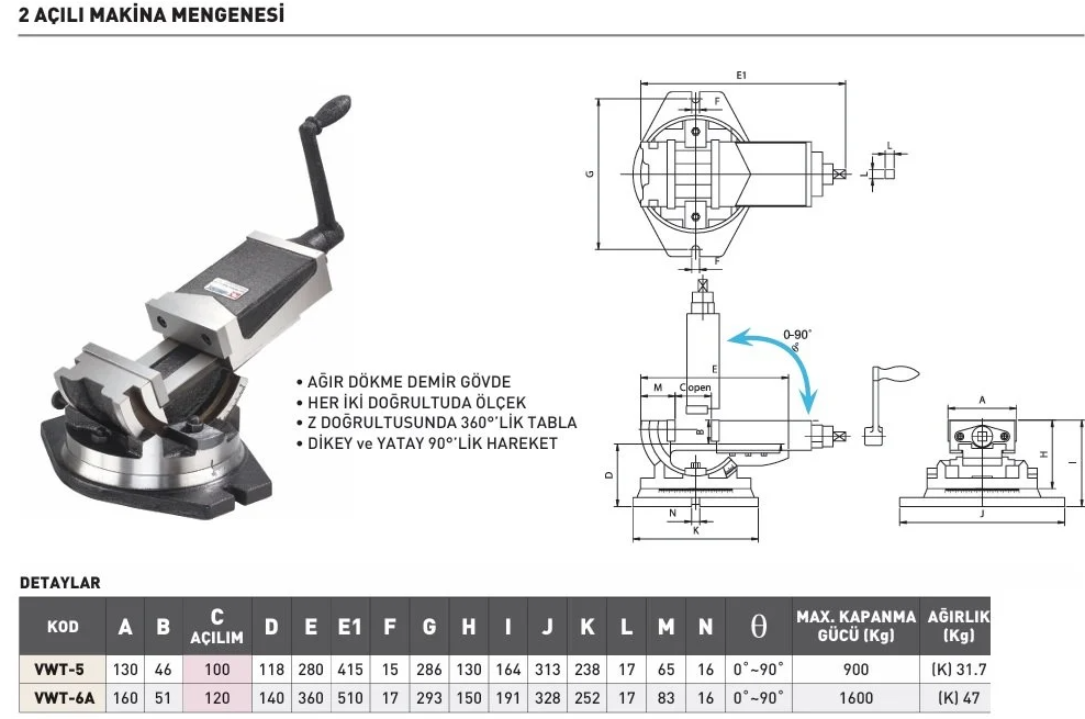 VERTEX VWT-5 2 Açılı Makine Mengenesi