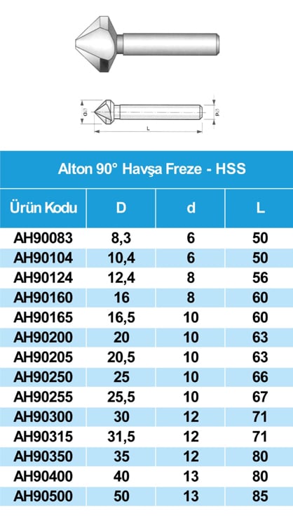 ALTON 30 mm 90° Havşa Freze HSS AH90300