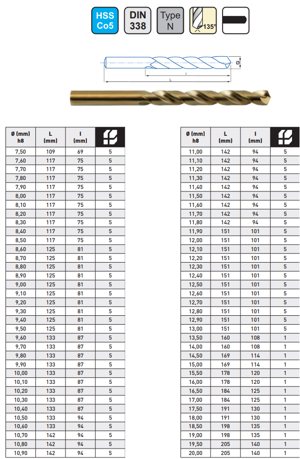 11.80mm KRONE DIN338 ALTIN SERİ MATKAP UCU HSSCO5 (5 ADET)