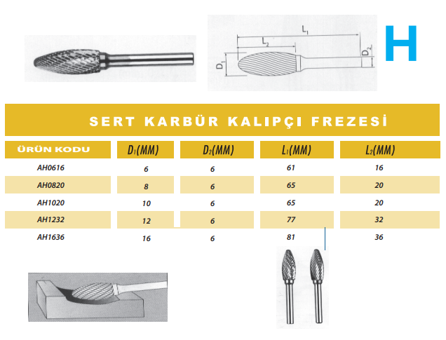 Alton H Tipi Karbür Kalıpçı Freze - 12mm
