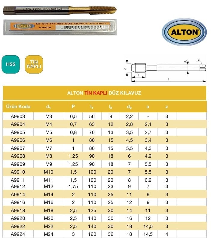 Alton M8 Tin Kaplı Düz Makine Kılavuzu