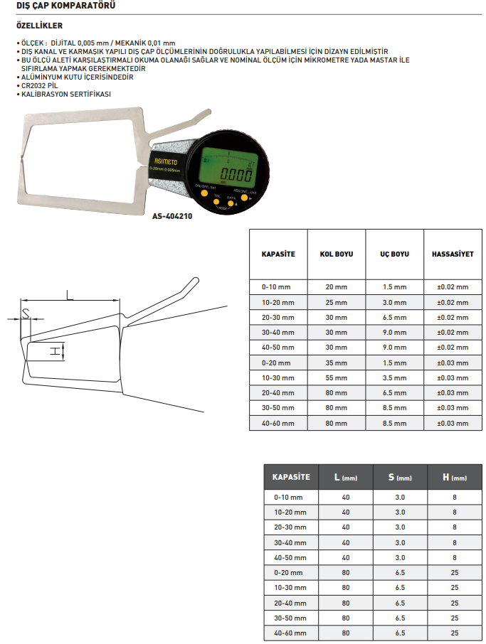 Asimeto Dijital Dış Çap Komparatörü 0-20mm | AS-404210