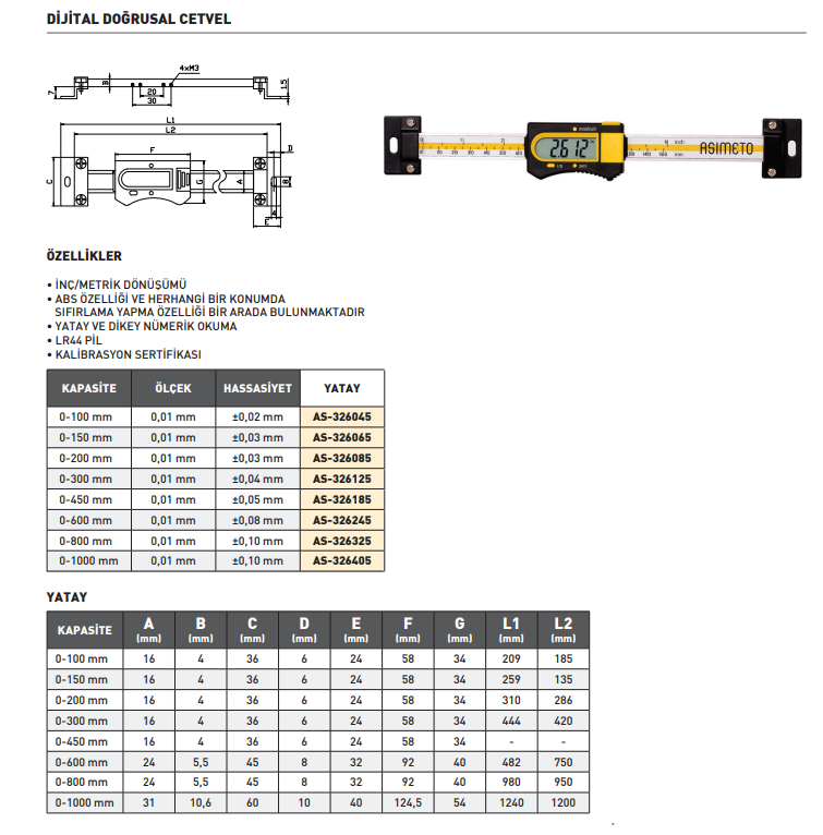 Asimeto Dijital Doğrusal Cetvel 0-100mm Yatay | AS-326045