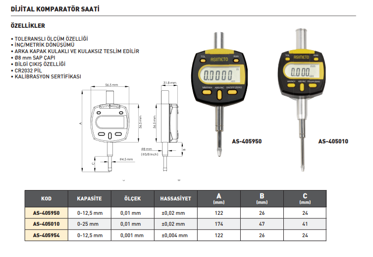 Asimeto Dijital Komparatör Saati 0-25mm | AS-405010