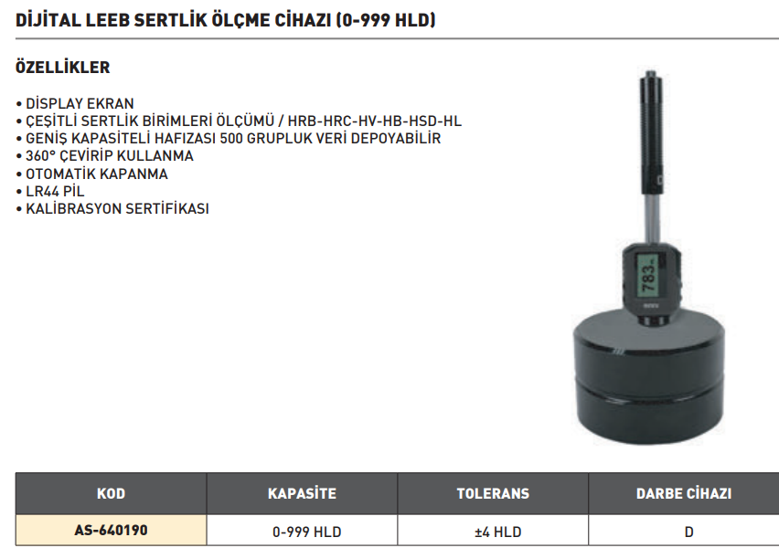 Desteklenen Sertlik Birimleri: HRB, HRC, HV, HB, HSD, HL