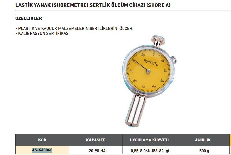 Asimeto Lastik Yanak Shoremetre Sertlik Ölçme Cihazı Shore A | AS-640060