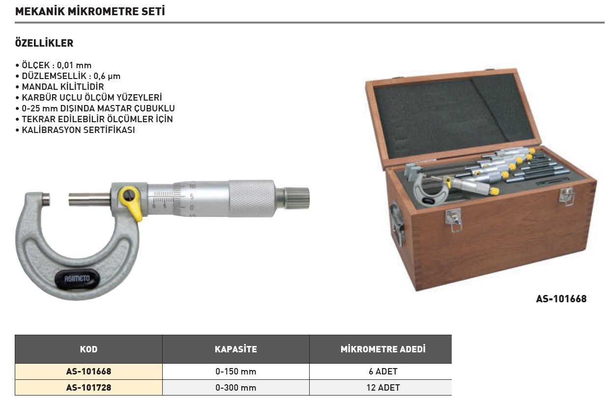 Asimeto Mekanik Mikrometre Seti 0-300mm | AS-101728