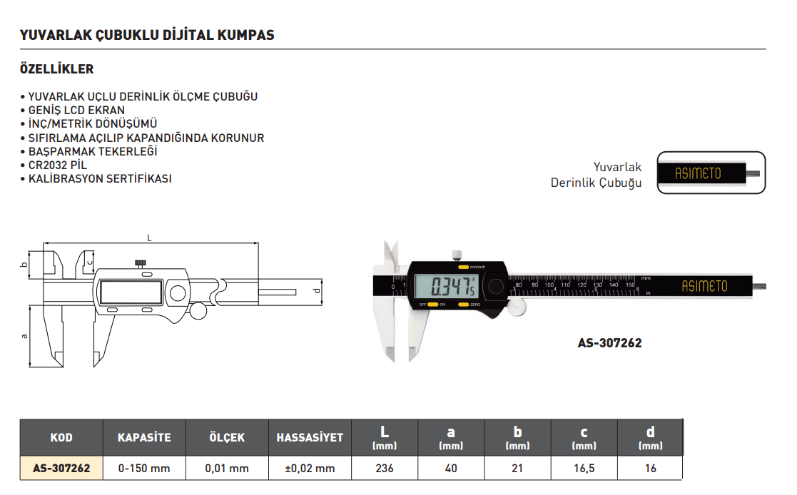 Asimeto Yuvarlak Çubuklu Dijital Kumpas 150mm | AS-307262