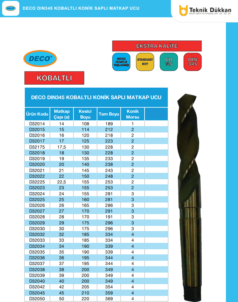 Deco CO5 DIN345 KOBALTLI Konik Saplı Matkap Ucu - 28mm