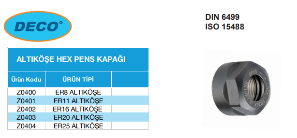 DECO ER8 Hexogen/Altı Köşe Kapak A Formu