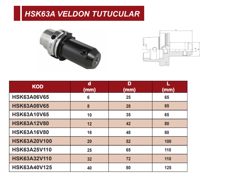 Eric HSK63 - 16V 80 Boy Veldon Tutucu HSK63A16V80