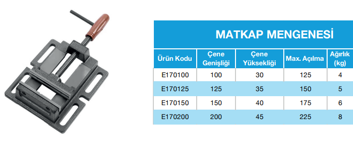 ERT matkap mengenesi 100mm, iş parçalarını güvenli şekilde sabitlemek isteyen kullanıcılar için güçlü bir çözümdür. Sağlam çelik gövde, titreşimi azaltır ve daha hassas delme sonuçları sağlar. Kullanıcı, mengeneyi kolayca kurar ve hızlıca işlem yapmaya başlar.