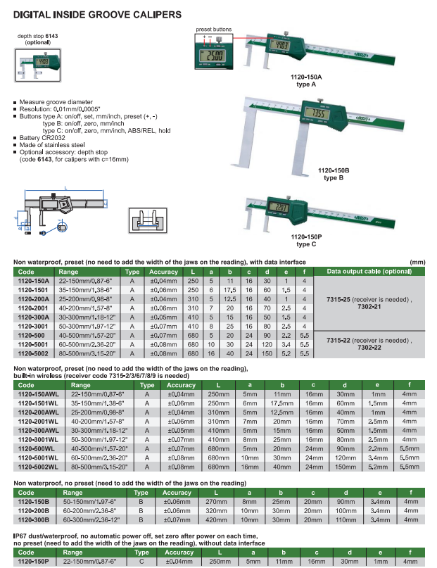 - Opsiyonel aksesuar: derinlik sabitleme (kod 6143), bilgi çıkış kablosu (kod 7315-21, 7302-21)