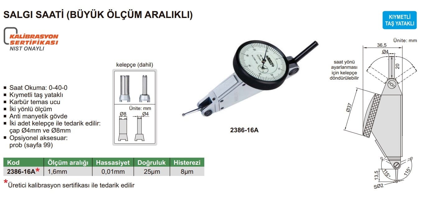 - Ölçü: +/-1.6 mm