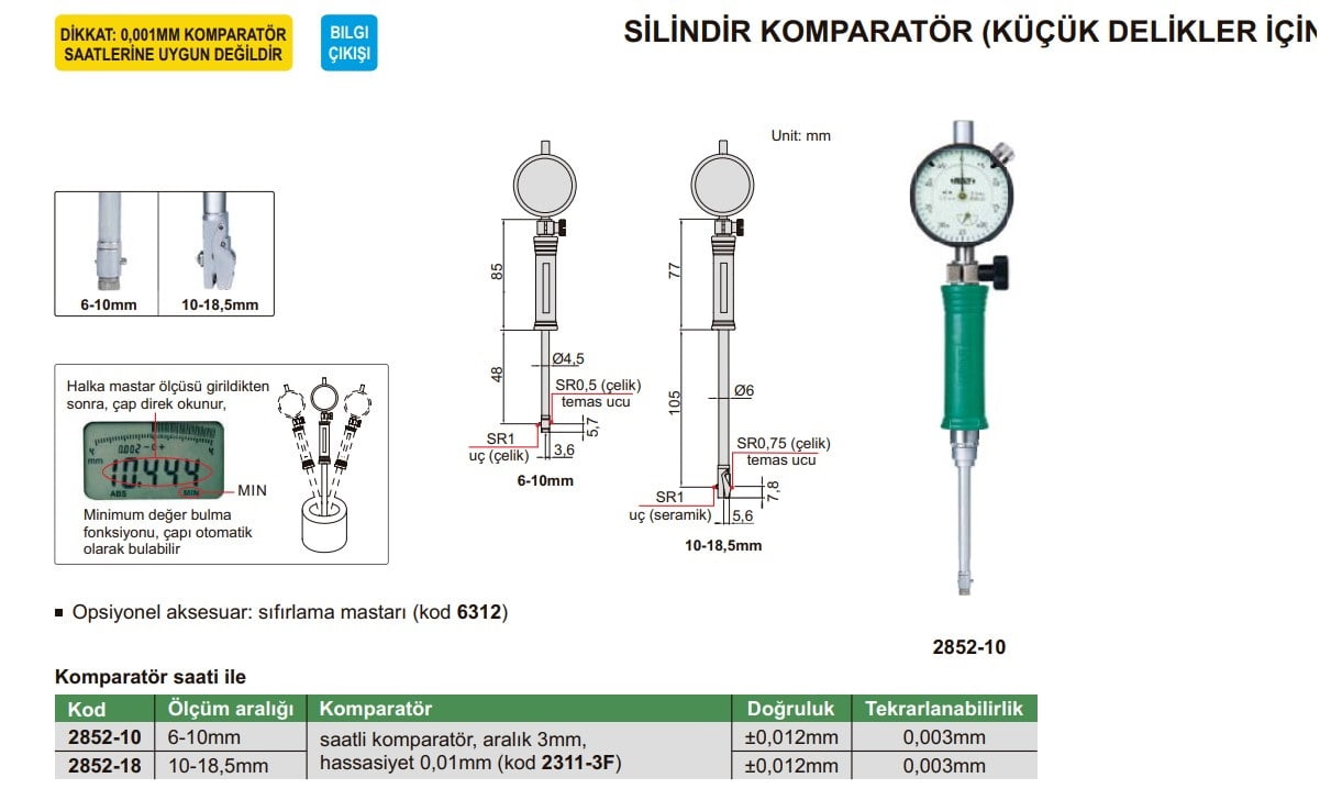 INSIZE 2852 Silindir Komparatörü (Küçük Delikler İçin)