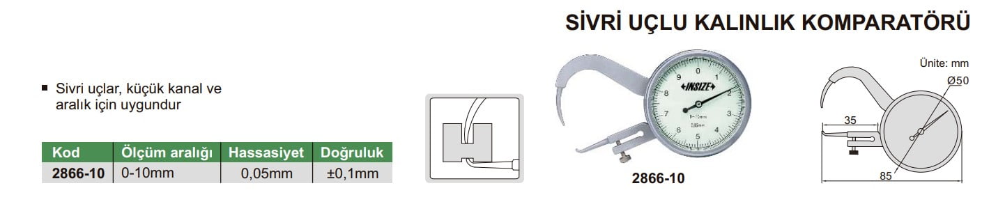 INSIZE 2866-10 Sivri Uçlu Kalınlık Komparatörü