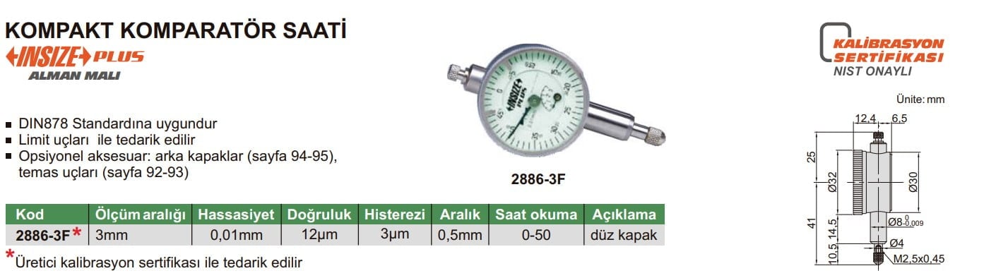 INSIZE 2886-3F Kompakt Komparatör Saati