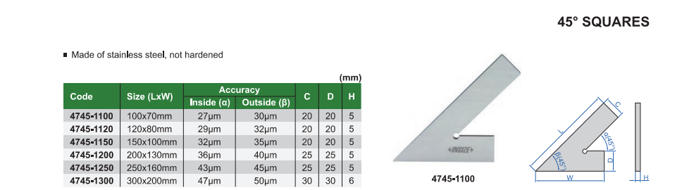 Düz Gönye 45 Derece DIN 875 Ölçü: 200x130 mm Hassasiyet: 2 Hassasiyet