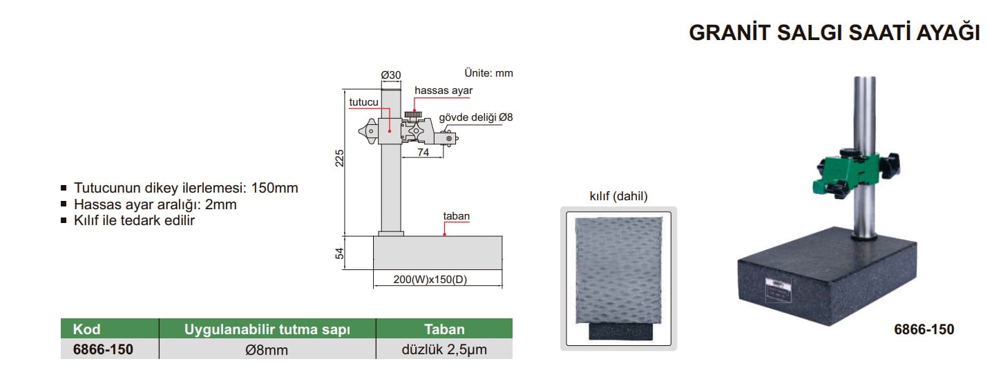 INSIZE 6866-150 Granit Salgı Saati Ayağı