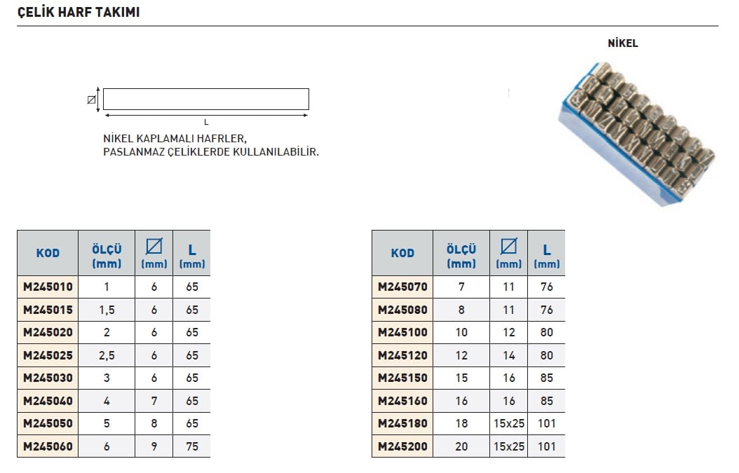 MASUS Çelik Harf Takımı Nikel Kaplı