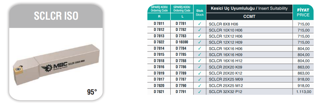 MBC Dış Çap Torna Kateri SCLCR 20X20 K12 Sağ
