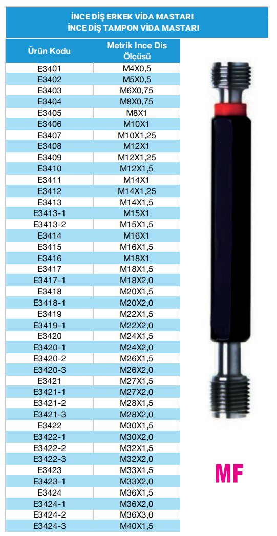 Metrik İnce Diş Vida Tampon Mastarı Geçer Geçmez Geçer Ve Geçmez Mastarlar İle Tedarik Edilir