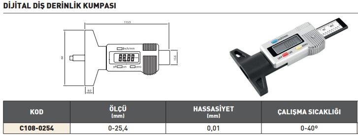 | Ölçüm Tipi | Dijital Diş Derinlik Kumpası |