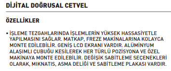 İşleme tezgahlarında işlemlerin yüksek hassasiyetle yapılmasını sağlar.