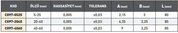 Hassasiyet: 0.005 mm