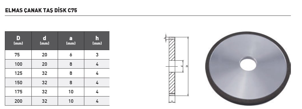Bağ Tipi: C75 – Elmas bağlı yüksek sertlik