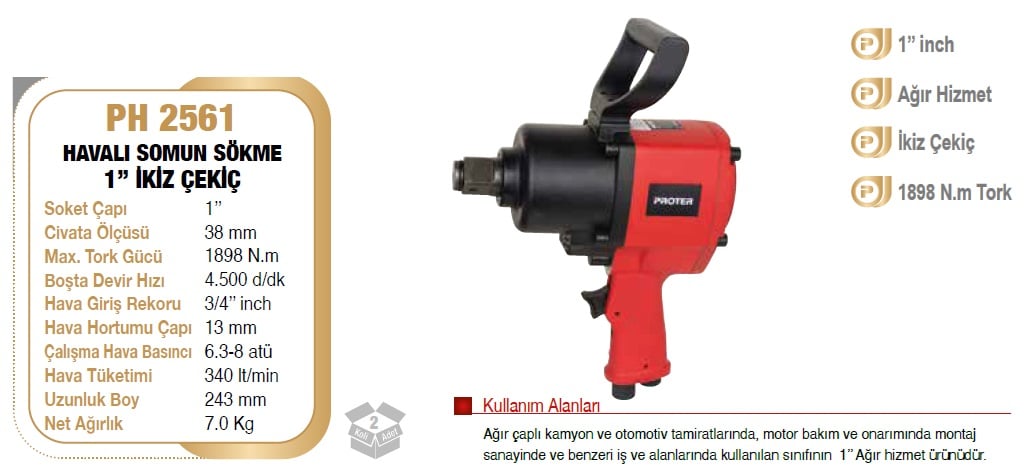 Proter Havalı Somun Sökme 1'' İkiz Çekiç PH 2561