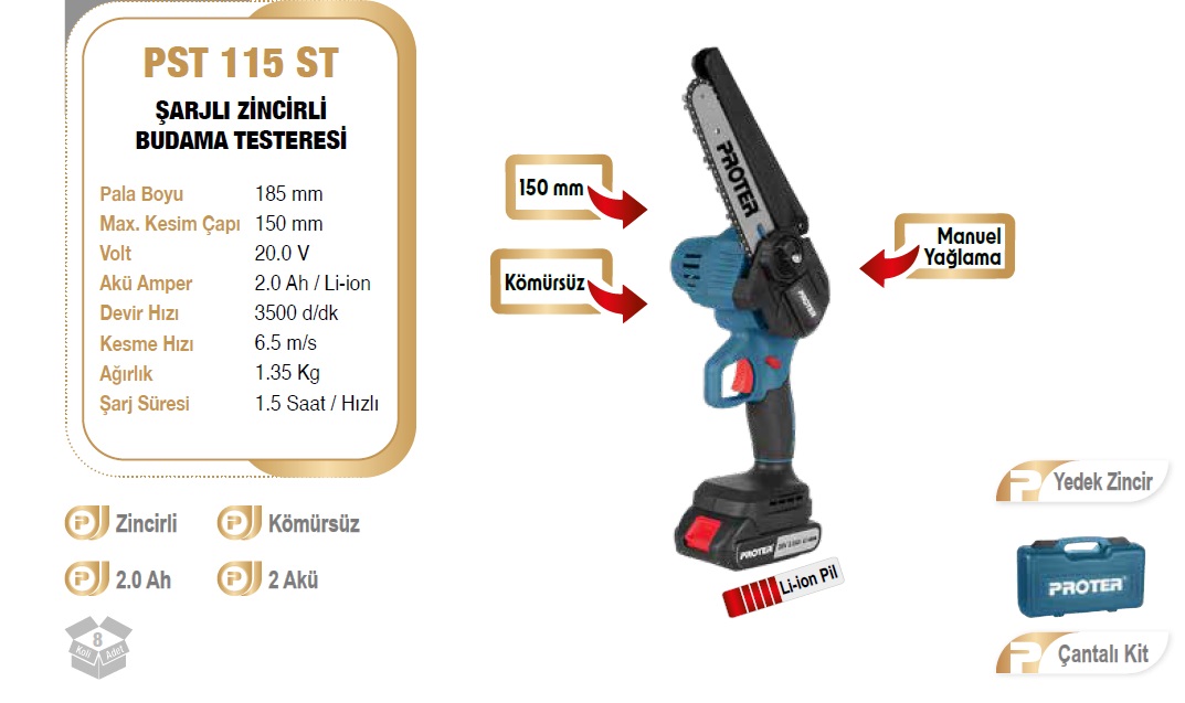 PROTER Şarjlı Zincirli Budama Testeresi PST 115 ST