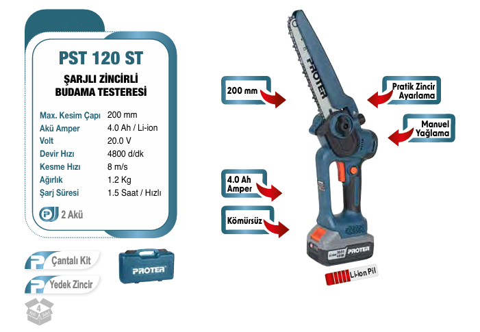 PROTER Şarjlı Zincirli Budama Testeresi PST 120 ST