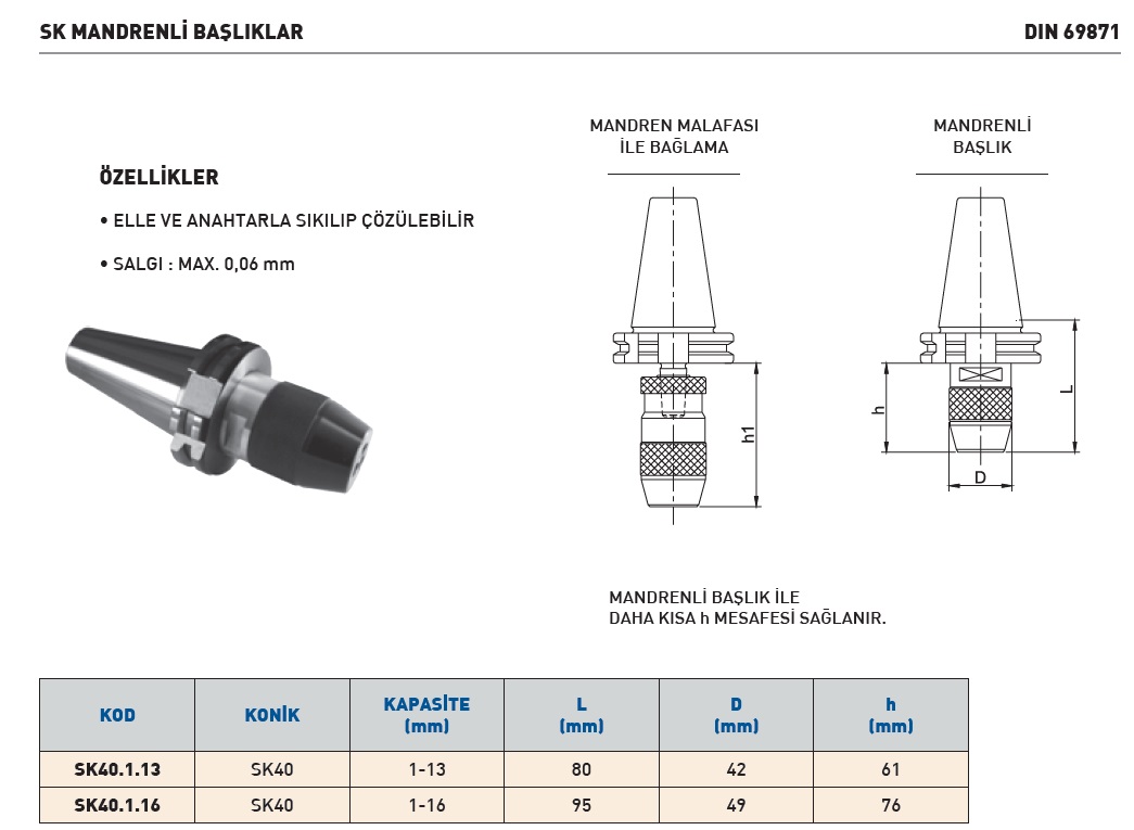 TEMAK SK40.1.13 Mandrenli Başlık, CNC tezgâhlarla uyumlu, yüksek hassasiyetli ve dayanıklı bir üründür. Teknik Dükkan tarafından sunulan bu ürün, profesyonel üretim ortamlarında güvenilir performans sağlar. Sağlam gövde yapısı, uzun ömürlü kullanım sunar ve maliyet avantajı oluşturur. Mandrenli başlık sistemi, takım değişimlerini kolaylaştırır ve üretim süreçlerini hızlandırır. Kullanıcılar, yoğun iş temposunda zaman kaybı yaşamadan çalışmalarını sürdürür.