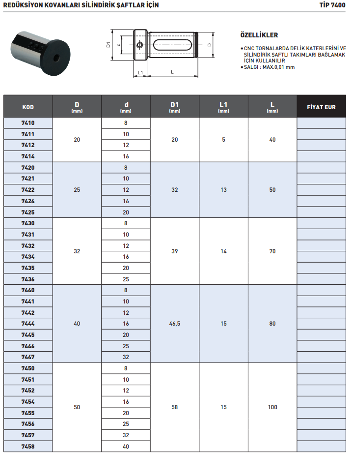 TEMAK Redüksiyon Kovanları Silindirik Şaftlar İçin - 40X20