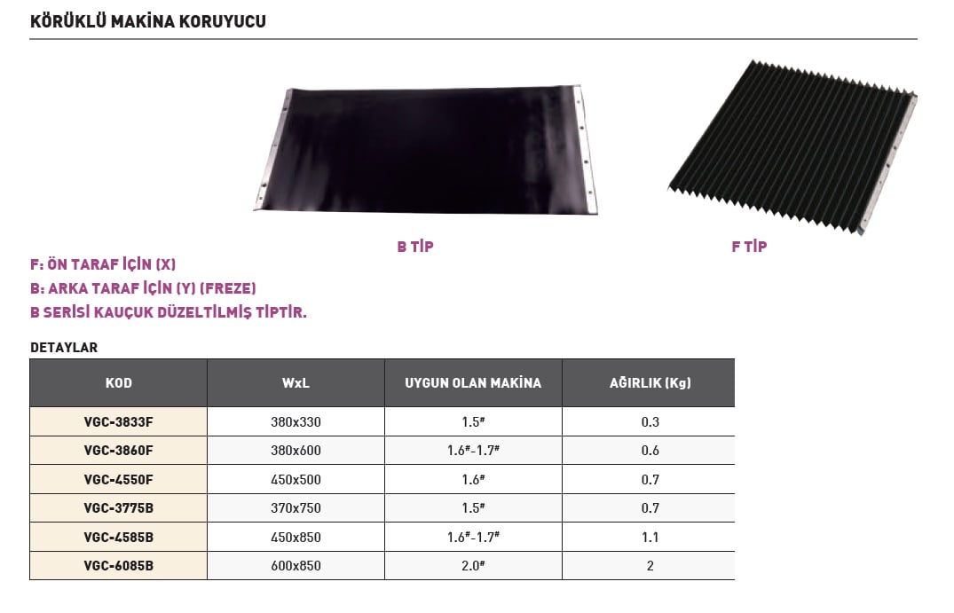 VERTEX Körüklü Makina Koruyucu VERTEX Körüklü Makina Koruyucu