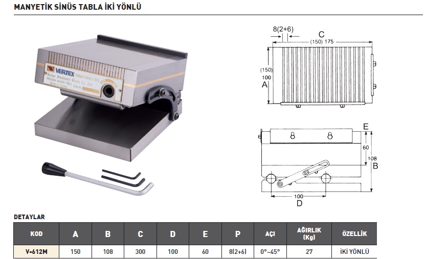 VERTEX Manyetik Sinüs Tabla İki Yönlü