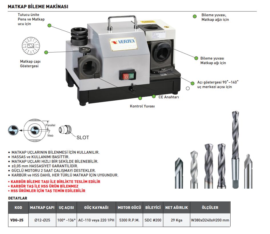VERTEX Matkap Bileme Makinası VDG-25