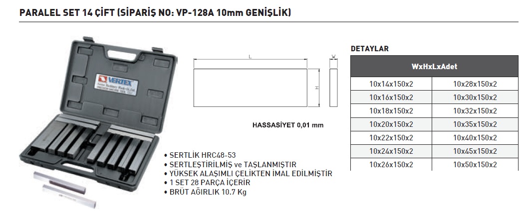 vp-128a vertex paralel set 14 cift boy:150x10mm