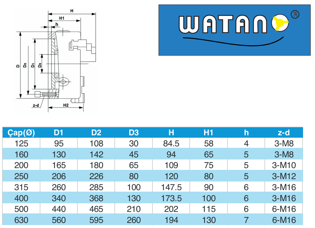 WATANO Döndürülebilir Üç Ayaklı Torna Aynası 125x3