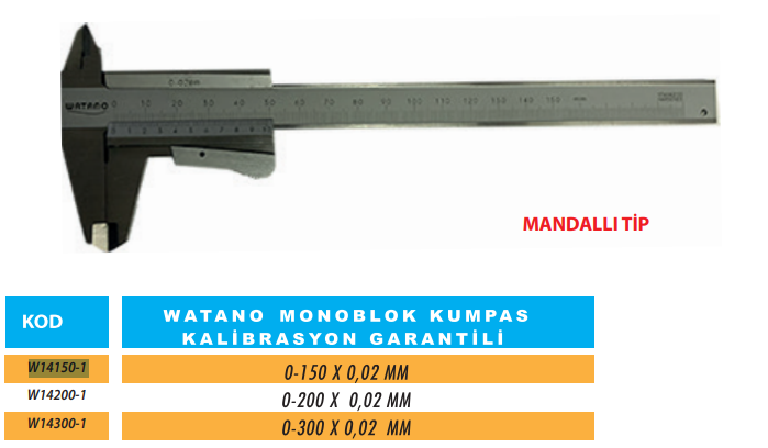 Watano Monoblok Mandallı Tip Mekanik Kumpas 200x0.02mm